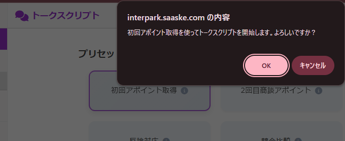 OKをクリックすることで、トークスクリプトの作成が始まります。