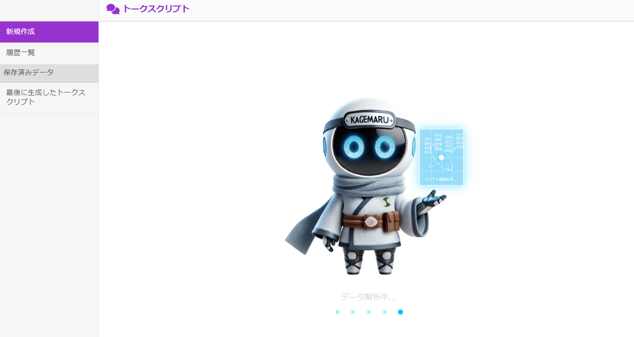 左メニュー「保存済みデータ」に作成されたトークスクリプトを保存することができます。