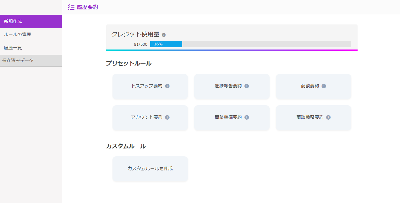 左メニュー「保存済みデータ」に作成された履歴要約を保存することができます。